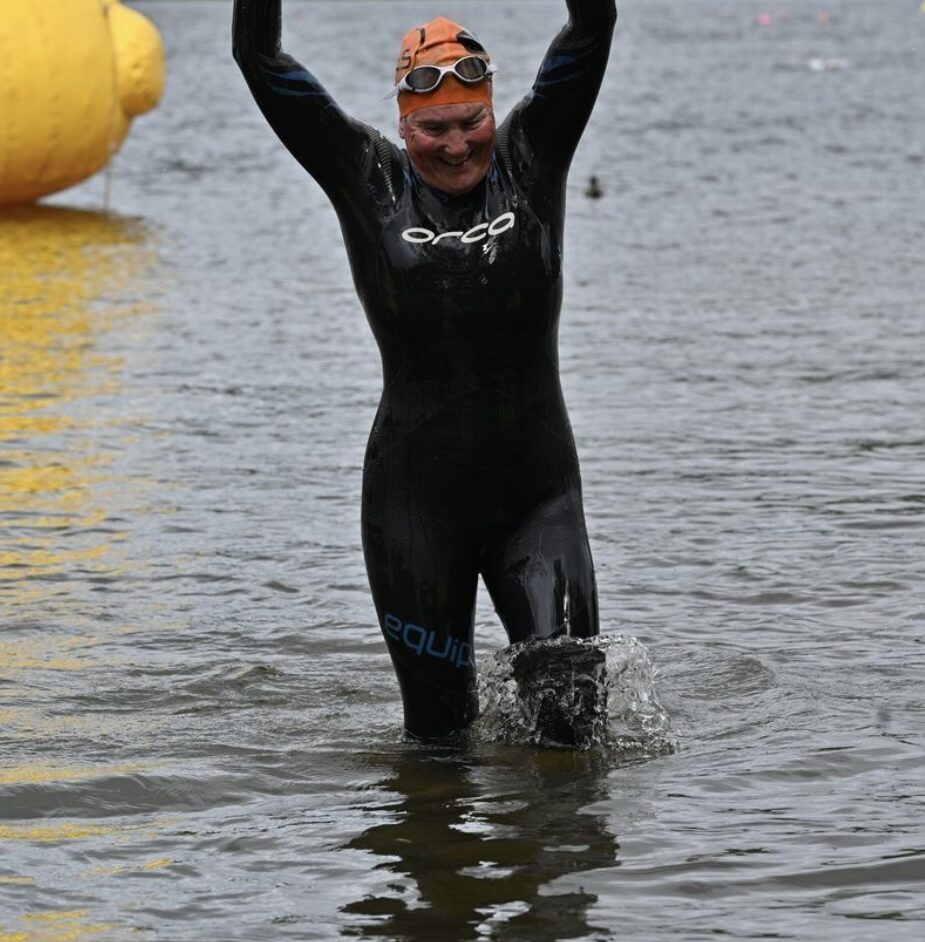 In the 3km event, Sheila Carter swam her way to 3rd in her age group in 1:05:44, finishing as 23rd woman overall. Despite a solid swim, Sheila claims she could have been quicker – if only the swim hats had stayed on!